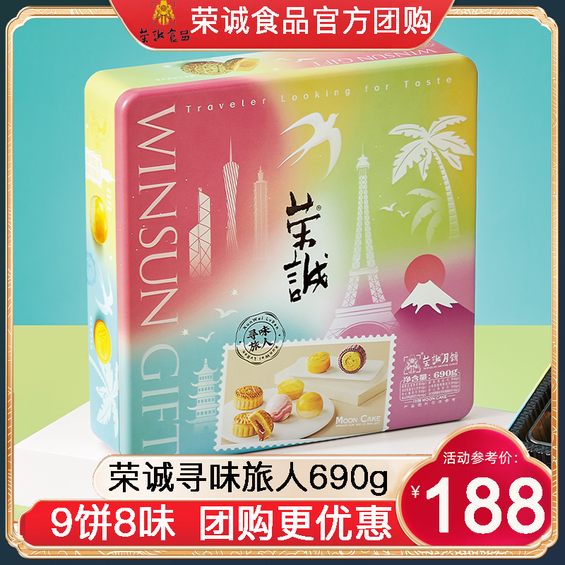 188荣诚寻味旅人流心月饼690g法式乳酪蛋黄白莲蓉国潮中秋送礼盒装荣诚月饼礼盒