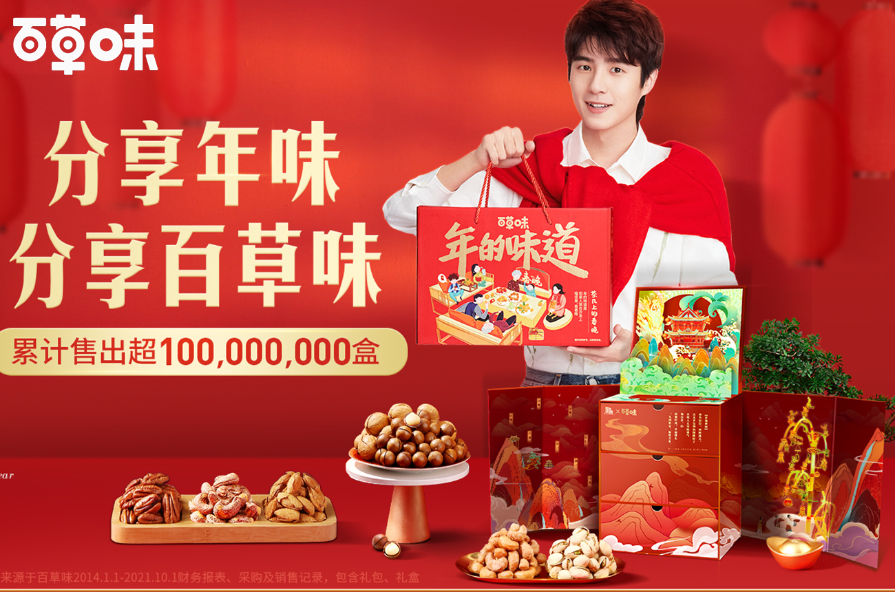 159百草味小伙伴的鞭炮年货礼盒16件2258g年的味道坚果礼盒零食大礼包网红小吃休闲坚果果干整箱送礼百草味团购