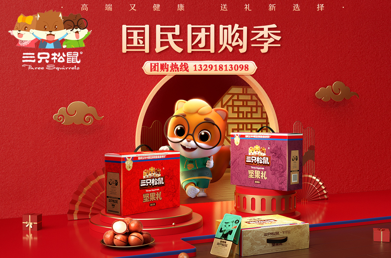 138三只松鼠坚果礼盒国红款1448g坚果开心果夏威夷果休闲零食大礼包春节年货送礼国红款礼盒三只松鼠官网团购