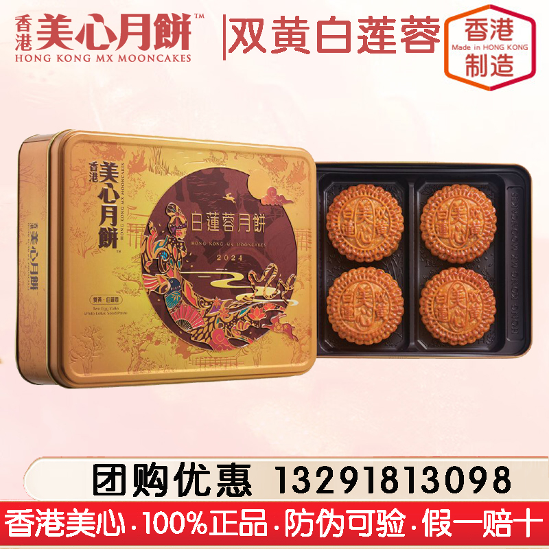318美心月饼美心双黄白莲蓉月饼礼盒美心港式风味传统月饼五仁蛋黄豆沙中秋月饼礼盒美心月饼官方团购4饼740g