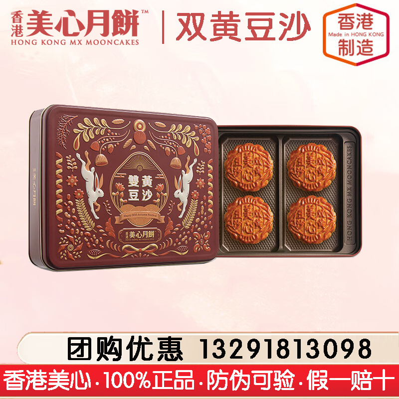 318香港美心双黄豆沙月饼礼盒美心月饼传统经典港式风味中秋月饼礼盒美心月饼官方团购4饼740g