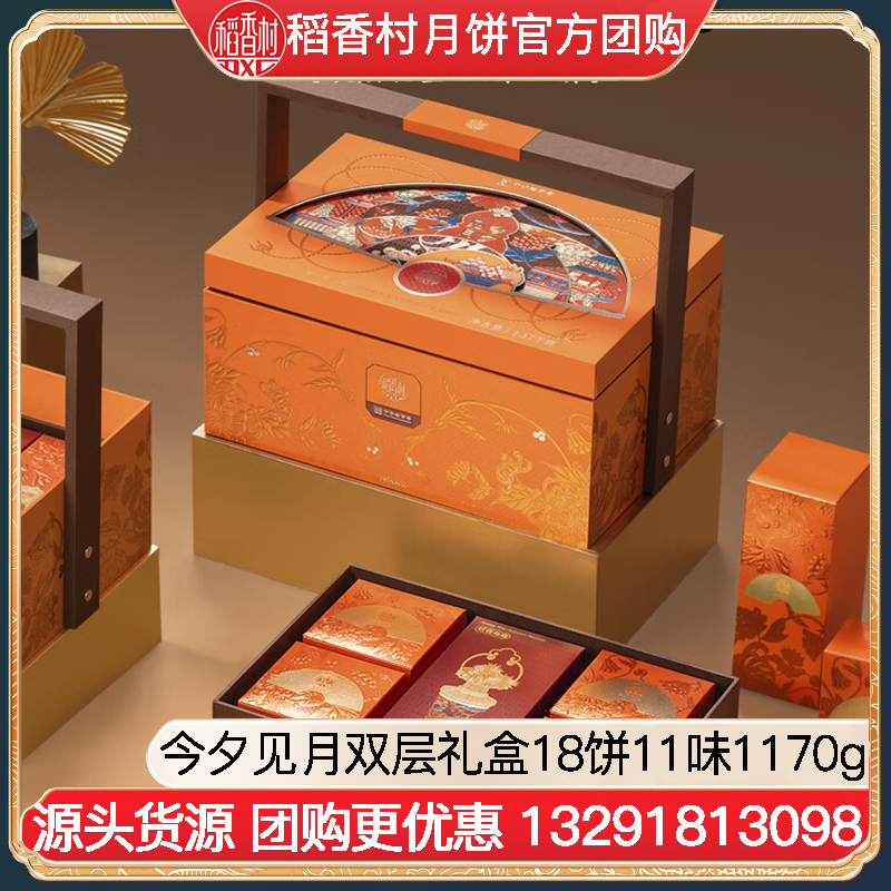 339稻香村今夕见月月饼礼盒1170g广式蛋黄莲蓉月饼苏式月饼港式流心奶黄月饼礼盒稻香村月饼官方旗舰店团购【今夕见月双层礼盒】18饼11味1170g