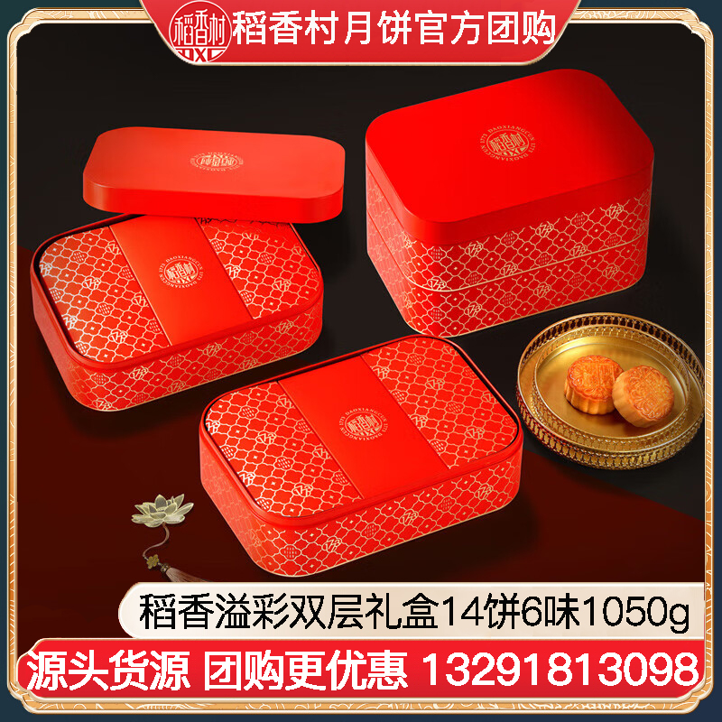 218稻香村月饼礼盒稻香溢彩1050g广式蛋黄莲蓉月饼苏式月饼港式流心奶黄月饼礼盒稻香村官方网站团购 【稻香溢彩双层礼盒】14饼6味1050g