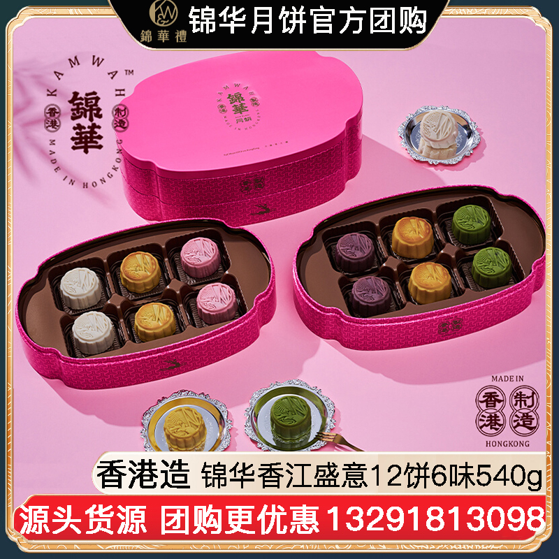 268香港锦华香江盛意月饼礼盒12饼6味540g双层装广式月饼苏式月饼港式流心奶黄月饼中秋礼盒中国香港中秋送礼品礼物福利(香港制造)【香江盛意月饼】礼盒装540g