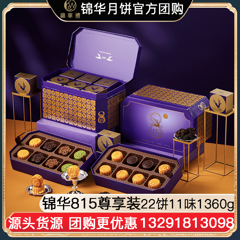 398锦华月饼礼盒815尊享装22饼11味1360g三层礼盒装广式月饼苏式月饼港式流心奶黄月饼中秋礼盒香港锦华食品官方团购【815尊享装】礼盒1360g