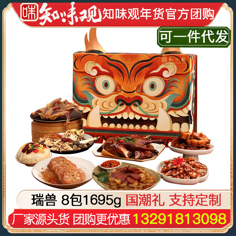 288知味观瑞兽年货大礼包8包1695g瑞兽送福国潮好礼知味观腊味熟食酱货年货礼盒酱鸭香肠火腿礼包杭州特产伴手礼年货礼品员工福利知味观官方团购网