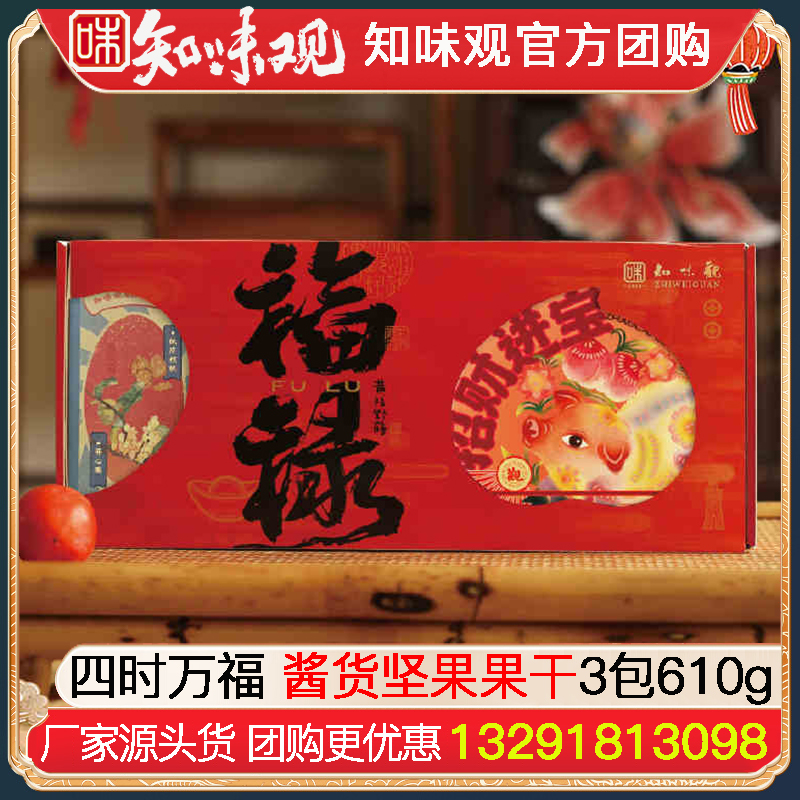 118知味观四时万福酱货坚果果干礼盒3包610g知味观新年礼盒杭州特产腊味熟食网红零食坚果干果知味观食品官网团购