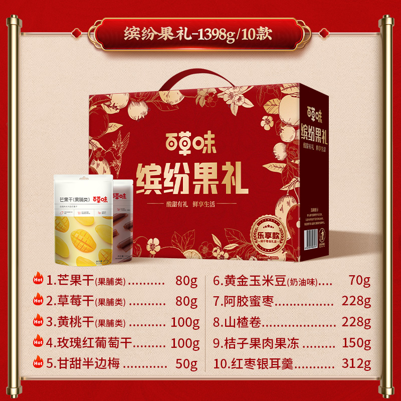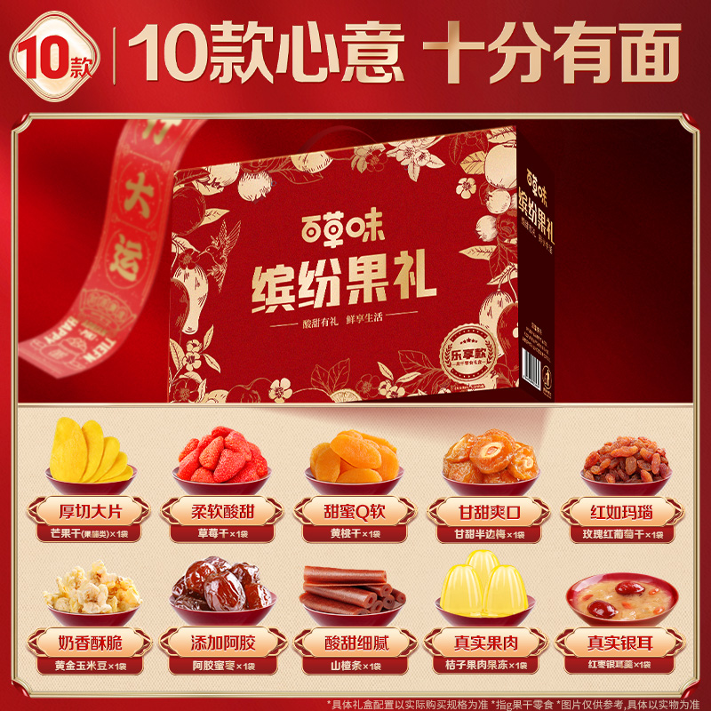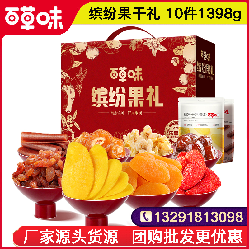 79百草味缤纷果干礼10件1398g果干礼盒零食大礼包果脯芒果干蜜饯休闲食品年货礼盒百草味旗舰店团购