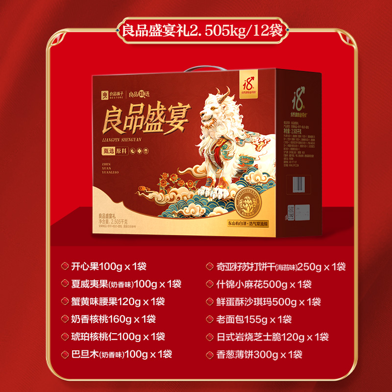 良品铺子零食大礼包礼盒良品盛宴礼2505g良品铺子高端坚果礼盒年货零食大礼包