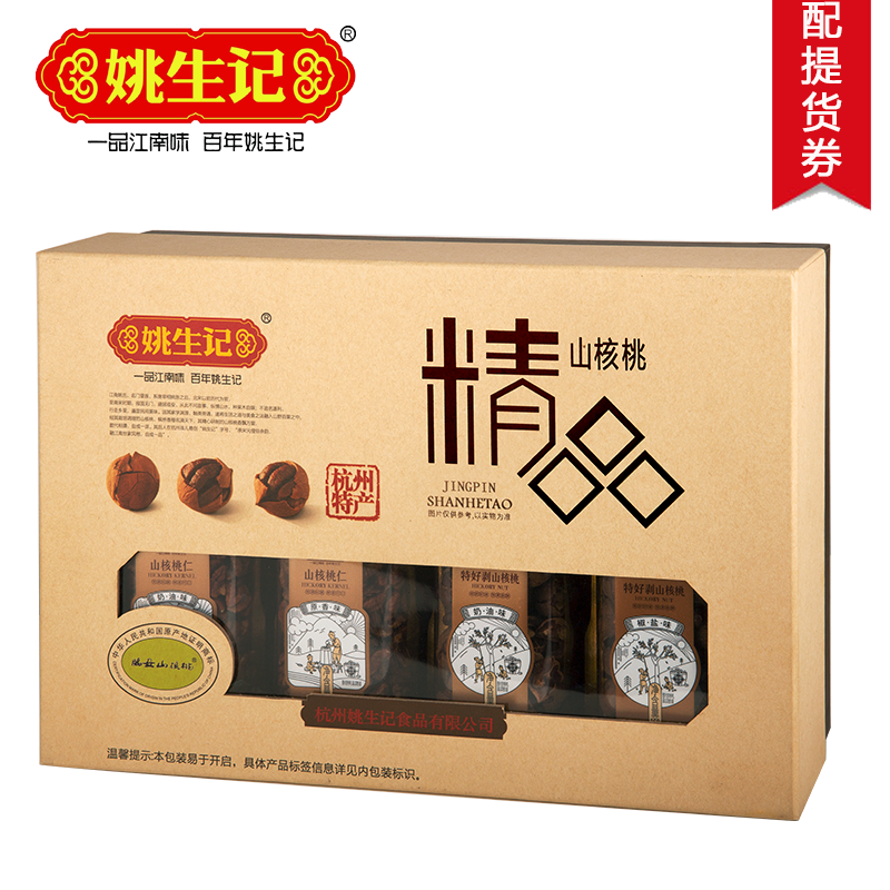 398姚生记精品山核桃礼盒1008g纯临安山核桃礼盒正宗临安特产山核桃手剥山核桃礼盒春节年货送礼干果坚果礼盒卡券姚生记官网团购