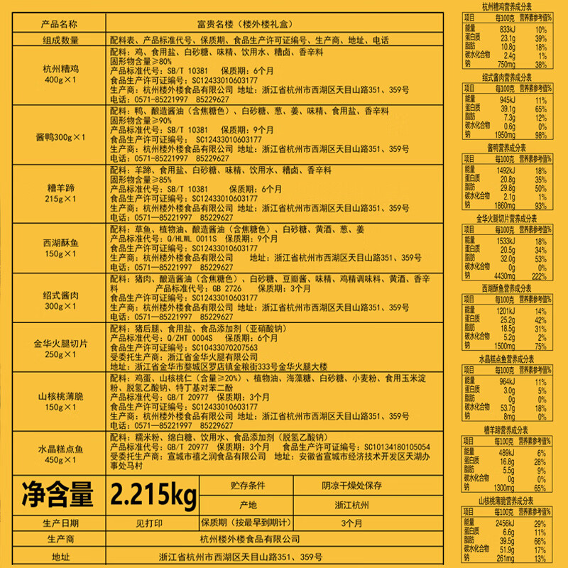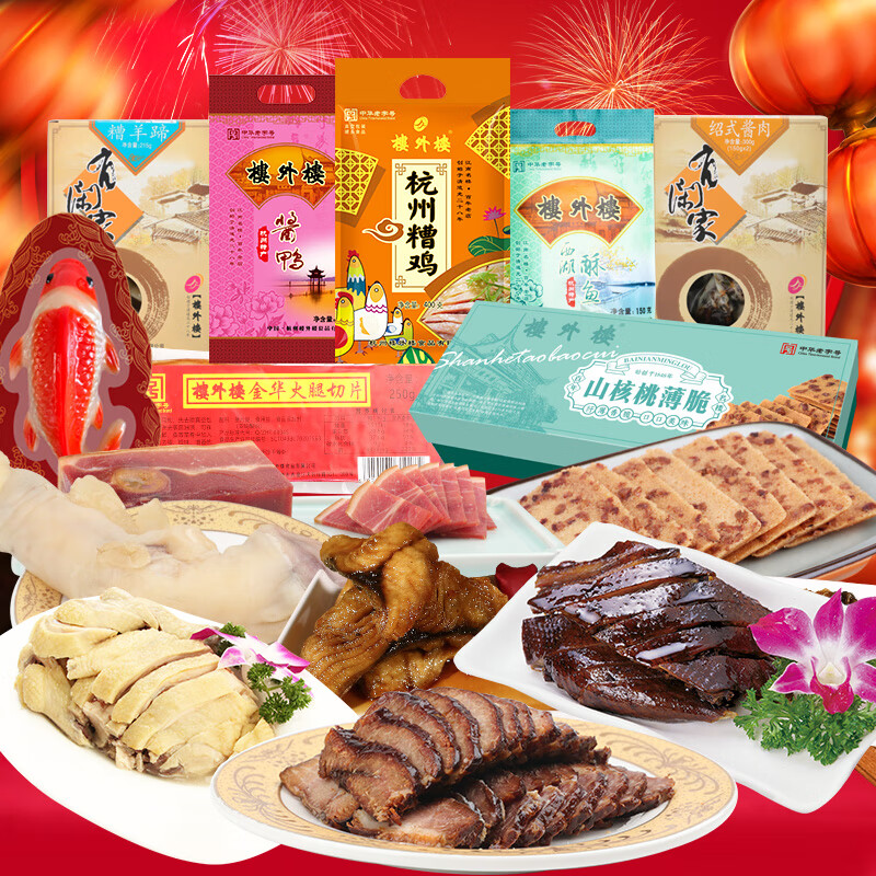 368楼外楼富贵名楼年货礼盒叫化鸡酱鸭熟食杭州特产杭帮名菜送礼零食大礼包8包2215g 富贵名楼礼盒