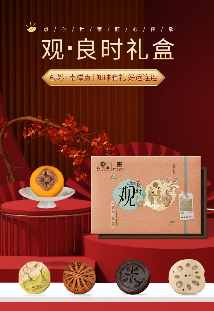 68知味观观·良时糕点礼盒240g莲蓉饼芝麻饼奶黄饼杭州特产老式传统点心网红零食伴手礼知味观年货礼盒团购